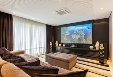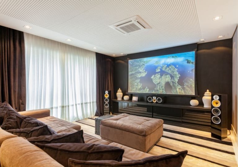 Som ambiente, Home Cinema, Flap de TV Motorizado, Projetor e Tela de Projeção são algumas das várias possibilidades que temos para fazer da sua casa um verdadeiro cinema.
